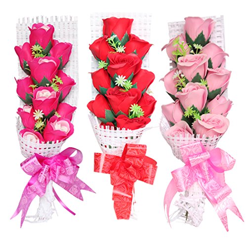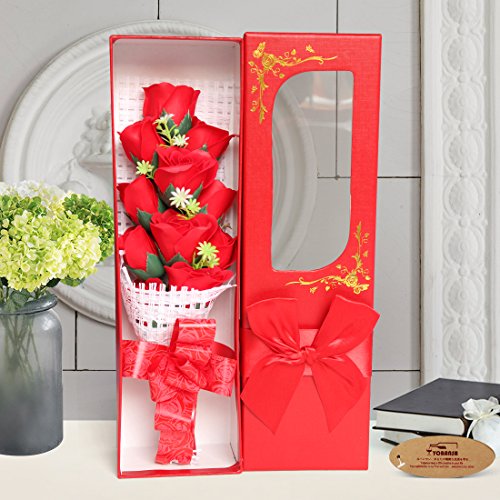 Yobansa 造花 フレグランスソープ フラワー 石鹸の花 花束 ギフト( 母の日 ・ バレンタイン ・ ホワイトデー ・ 入学 ・ 卒業 ・ 誕生日 ・ 結婚記念日 など 様々な お祝い の シーン に 最適 , 11 本 (新しい赤)