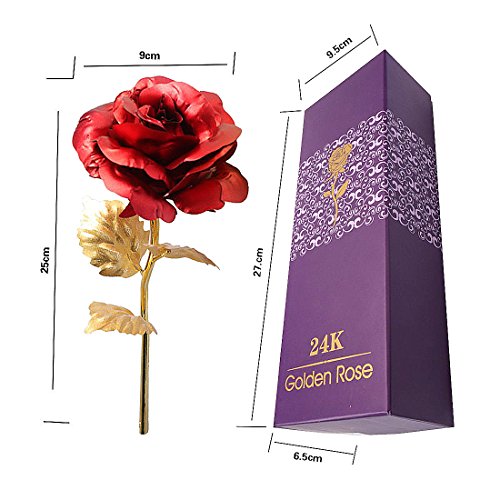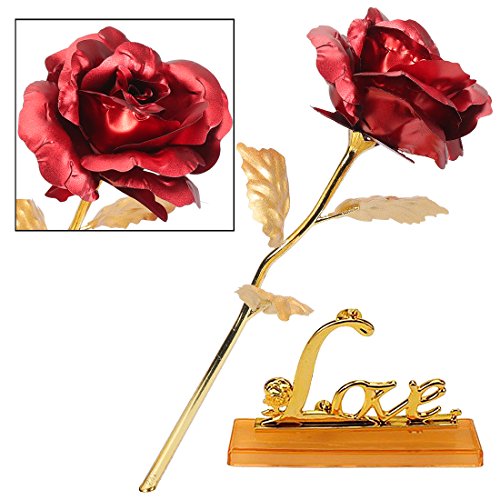 YOBANSA 24K 金箔のバラ 造花 永遠の花 記念日 母の日 バレンタインデー、結婚祝い、お誕生日などに プレゼント LOVE スタンド メッセージ カード付き (レッド)