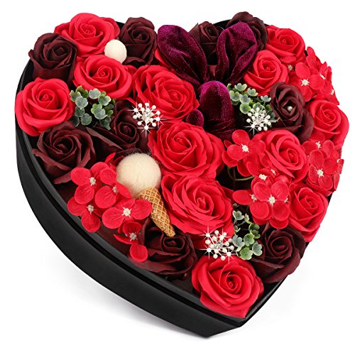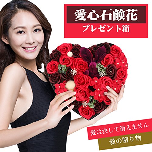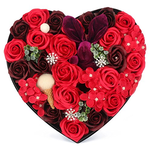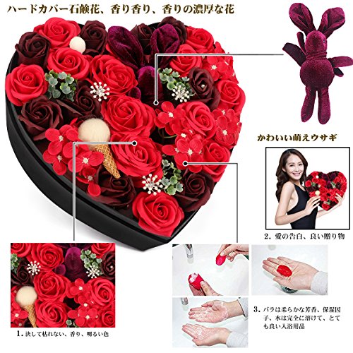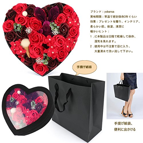 YOBANSA ソープフラワー 造花 枯れない 花 ハートフラワー形状ギフトボックス 誕生日 母の日 記念日 先生の日 バレンタインデー 昇進 転居など最適としてのプレゼント (レッド)