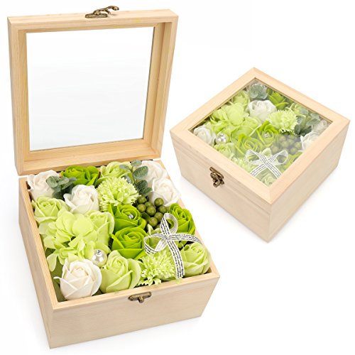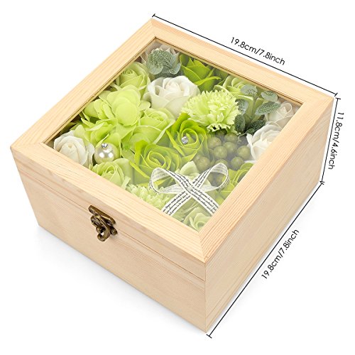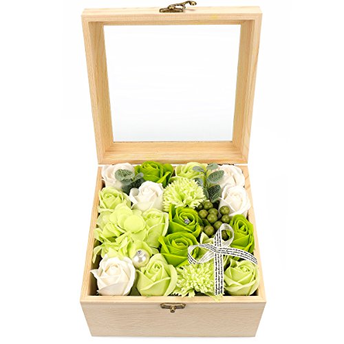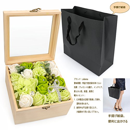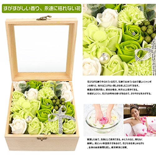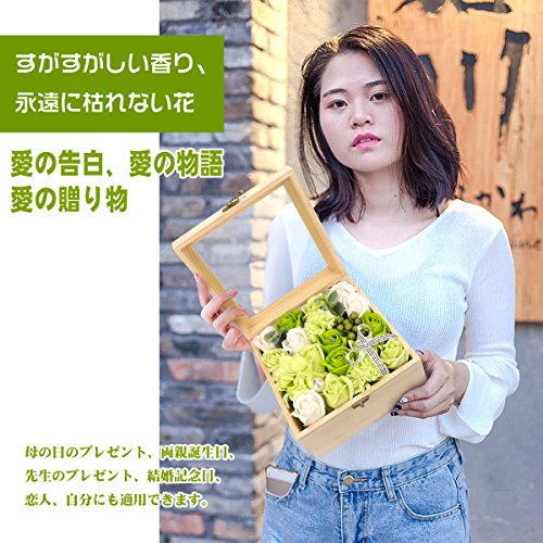 YOBANSA フレグランス ソープフラワー 造花 ローズ 枯れない花 木箱 ボックス ギフトクリスマスプレゼント 誕生日 母の日 記念日 先生の日 バレンタインデー 昇進 転居など最適としてのプレゼント (グリーン)