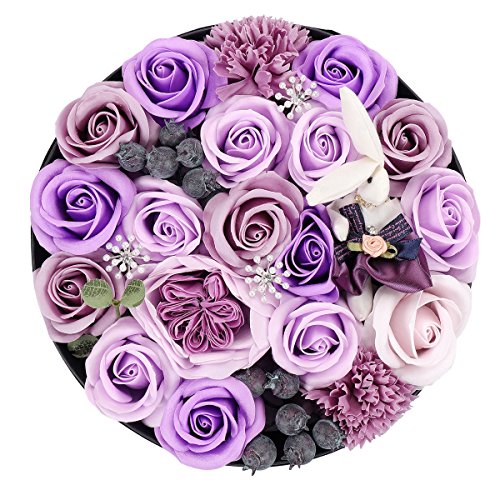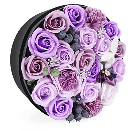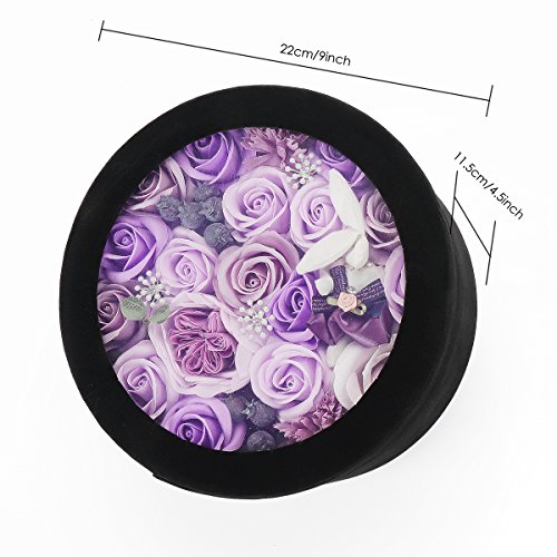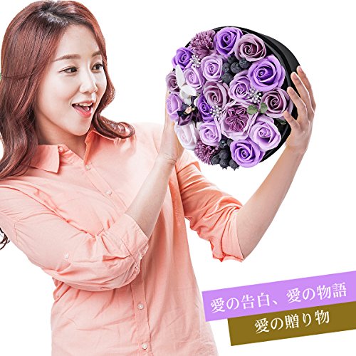 YOBANSA 花 フレグランス ソープフラワー ラウンドボックス タイプ 窓付き 丸型 ギフト ボックス クリスマスプレゼント 成人礼 結婚式 結婚記念日 出産祝い プロポーズ 誕生日プレゼント お祝いギフト (パープル)