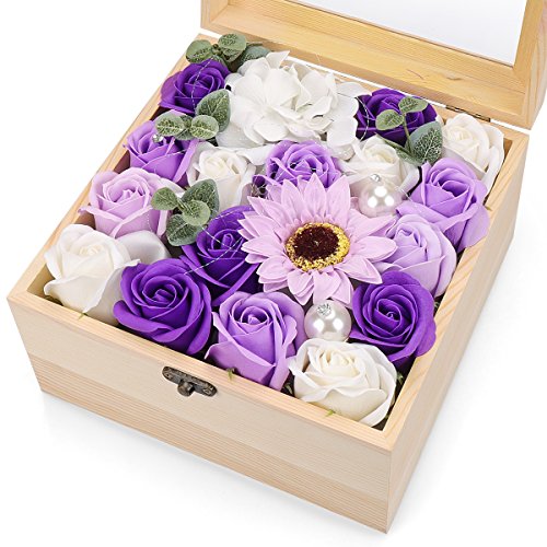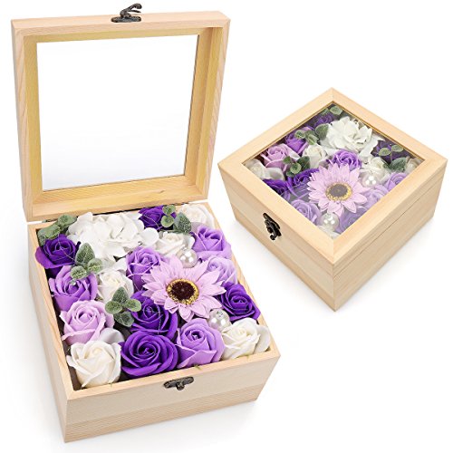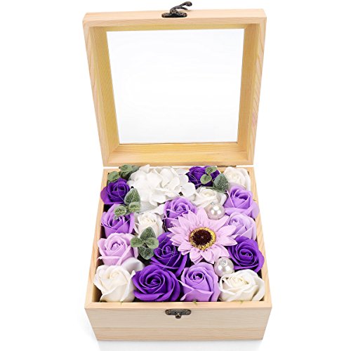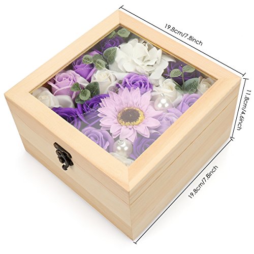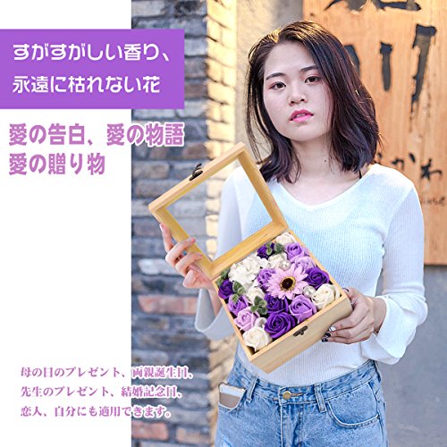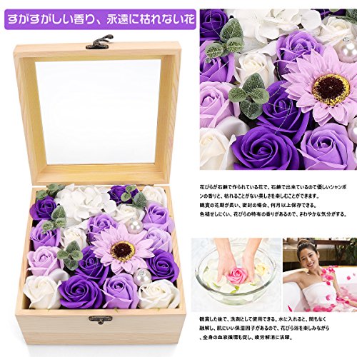 YOBANSA フレグランス ソープフラワー 造花 ローズ 枯れない花 木箱 ボックス ギフトクリスマスプレゼント 誕生日 母の日 記念日 先生の日 バレンタインデー 昇進 転居など最適としてのプレゼント (紫色の太陽の花)