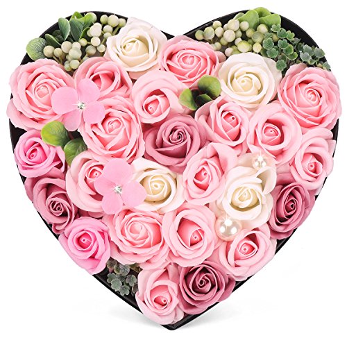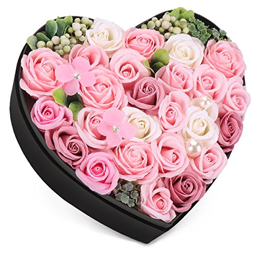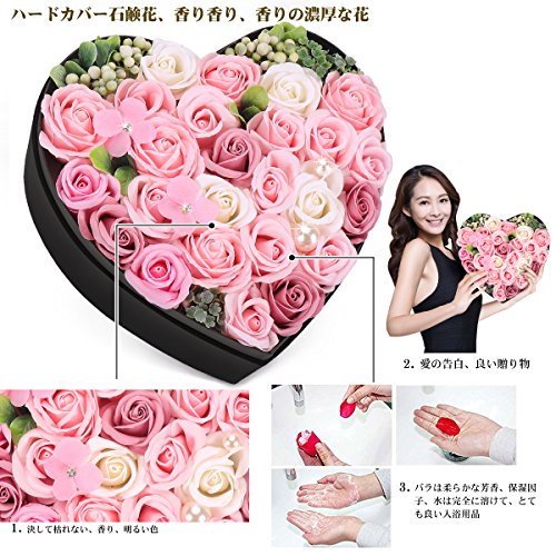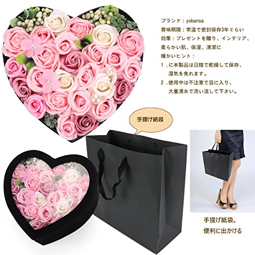 YOBANSA ソープフラワー 造花 枯れない 花 ハートフラワー形状ギフトボックス 誕生日 母の日 記念日 先生の日 バレンタインデー 昇進 転居など最適としてのプレゼント (深いピンク)