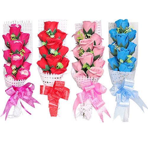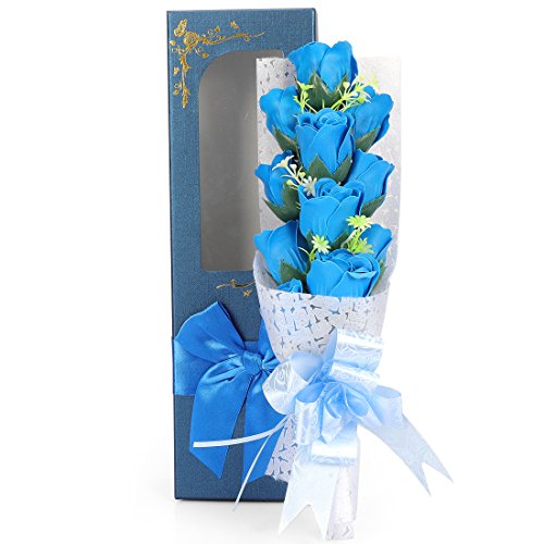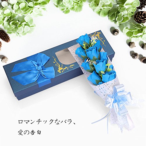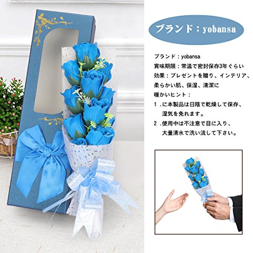 Yobansa 造花 フレグランスソープ フラワー 石鹸の花 花束 ギフト( 母の日 ・ バレンタイン ・ ホワイトデー ・ 入学 ・ 卒業 ・ 誕生日 ・ 結婚記念日 など 様々な お祝い の シーン に 最適 , 11 本 (青)