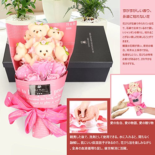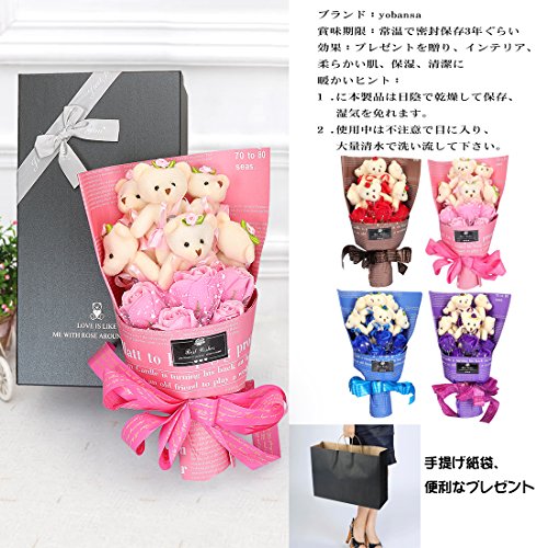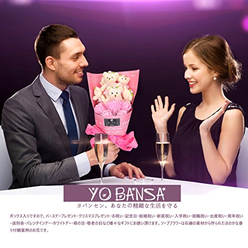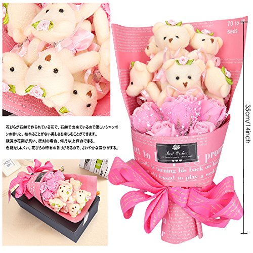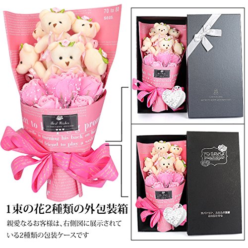 YOBANSA ソープフラワー 石鹸 花 バラ 造花 花束くま束 ベア ブーケ 可愛いぬいぐるみ (ベア6匹,花5匹) 父の日 誕生日 結婚祝い 結婚記念日のプレゼントにお勧め (シフォンパウダー)