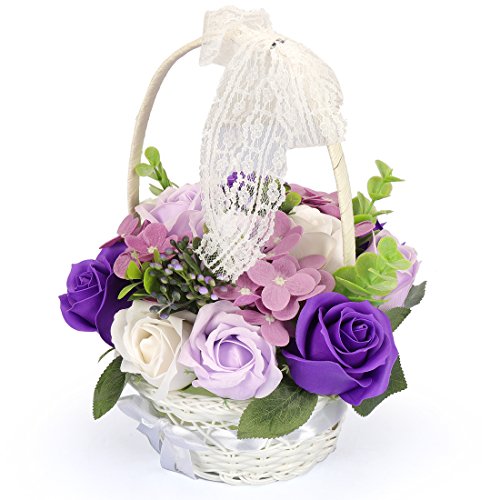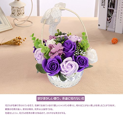YOBANSA フレグランス ソープフラワー 創意花かごギフトボックス 誕生日 父の日 記念日 先生の日 バレンタインデー 昇進 転居など最適としてのプレゼント (紫色のバラ)