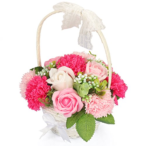 YOBANSA フレグランス ソープフラワー 創意花かごギフトボックス 誕生日 父の日 記念日 先生の日 バレンタインデー 昇進 転居など最適としてのプレゼント (ピンクのカーネーション)