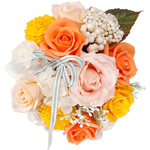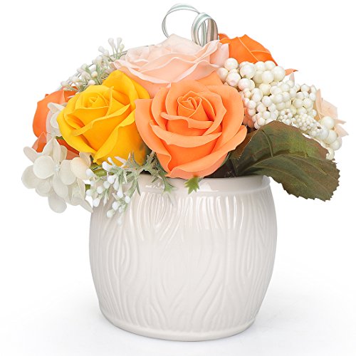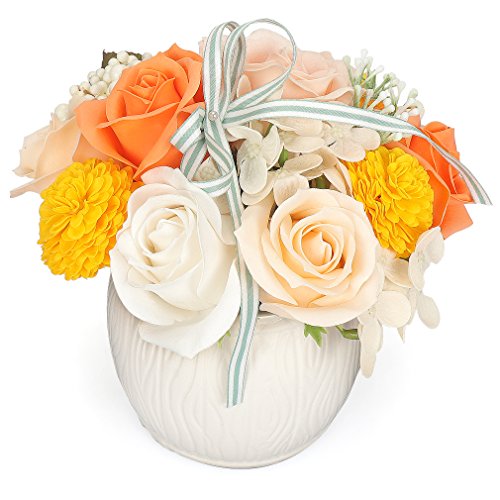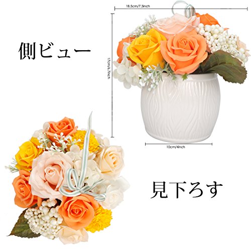 YOBANSA ソープフラワー 白陶器 枯れない 花 石鹸花束 創意プレゼント 父の日 母の日 バレンタインデー 誕生日 結婚記念日 クリスマス (オレンジ)