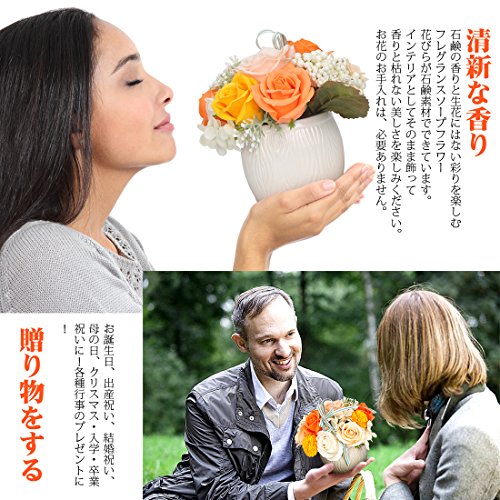 - ✅最新の白陶器デザイン、枯れない花、フレグランスシャボンフラワー(石鹸素材でつくられたお花)のフラワーブーケです。見た目にも美しく、石鹸の優しい香りも楽しめます。