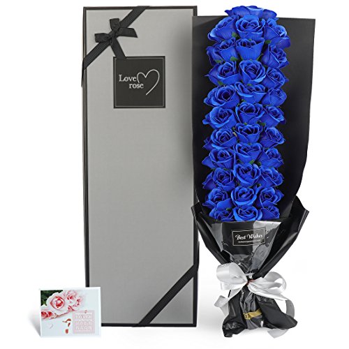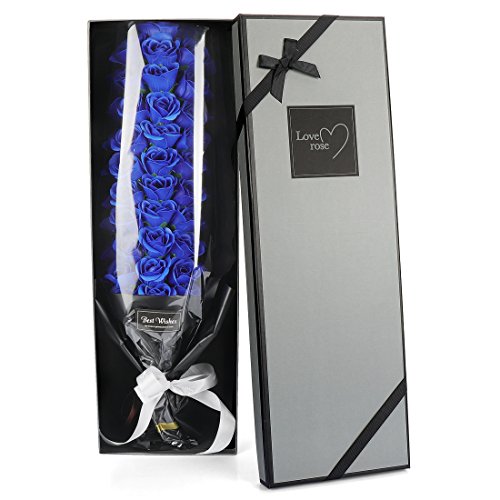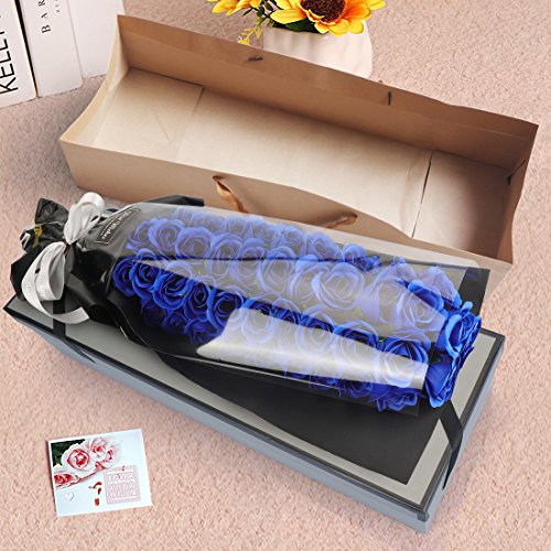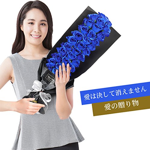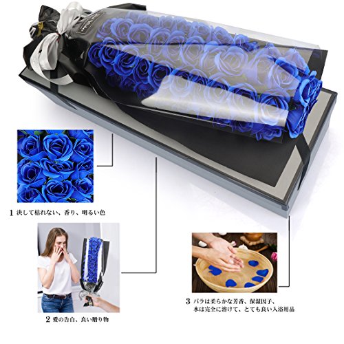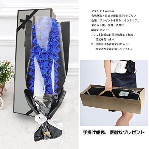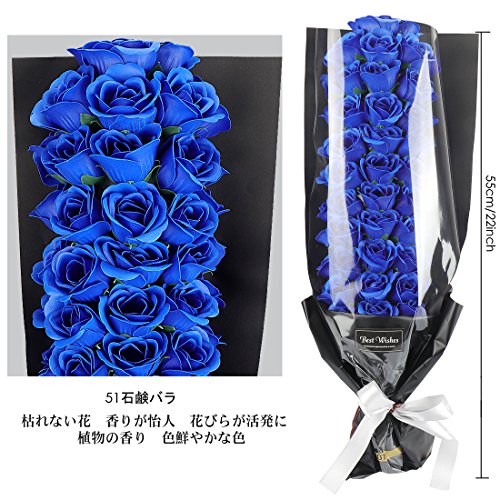 YOBANSA ソープフラワー 枯れない花 造花 バラ ブーケ 素敵な香り ボックス プレゼント 成人礼 結婚式 結婚記念日 出産祝い プロポーズ 誕生日プレゼント お祝いギフト (51本青)