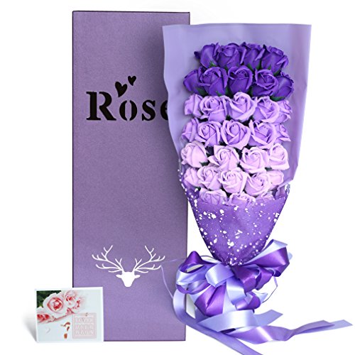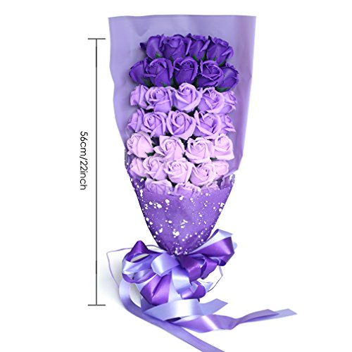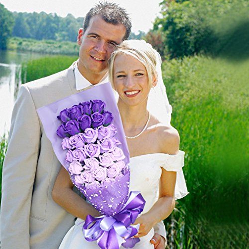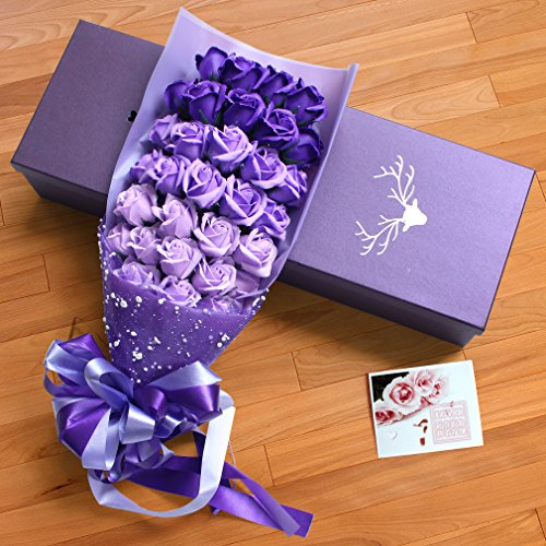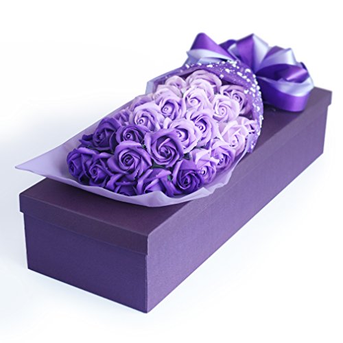 Yobansa 造花 石鹸の花 花束 ソープ フラワー 大切な人 へ 感謝 の 気持ち を 伝える 花束 ( 母の日 ・ バレンタイン ・ ホワイトデー ・ 入学 ・ 卒業 ・ 誕生日 ・ 結婚記念日 など 様々な お祝い の シーン に 最適 , 33 本 (パープル)