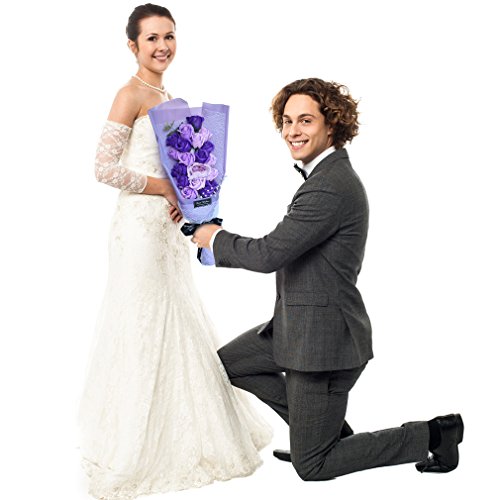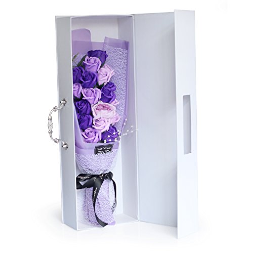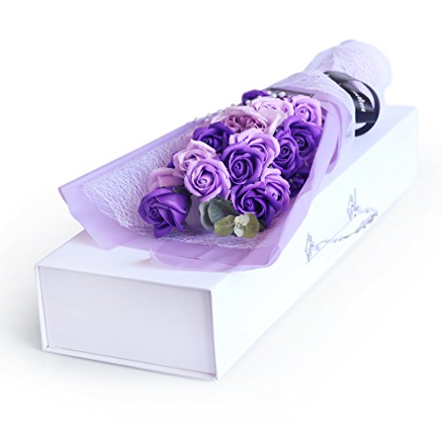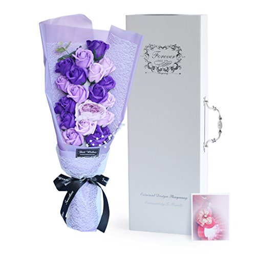 YOBANSA 造花 石鹸の花 花束 ソープ フラワー 大切な人 へ 感謝 の 気持ち を 伝える 花束 ( 母の日 ・ バレンタイン ・ ホワイトデー ・ 入学 ・ 卒業 ・ 誕生日 ・ 結婚記念日 など 様々な お祝い の シーン に 最適 , 22 本 (2色紫)