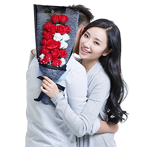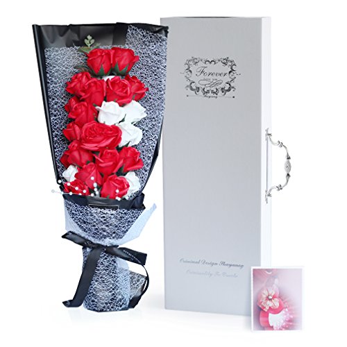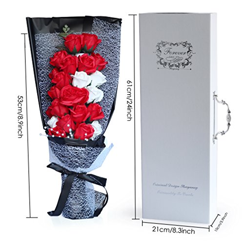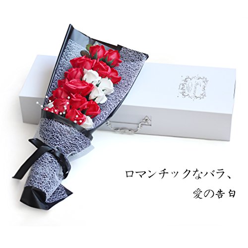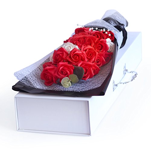 YOBANSA 造花 石鹸の花 花束 ソープ フラワー 大切な人 へ 感謝 の 気持ち を 伝える 花束 ( 母の日 ・ バレンタイン ・ ホワイトデー ・ 入学 ・ 卒業 ・ 誕生日 ・ 結婚記念日 など 様々な お祝い の シーン に 最適 , 22 本 (2色の赤)
