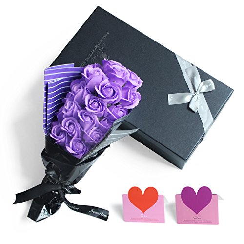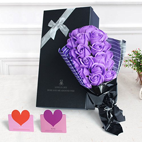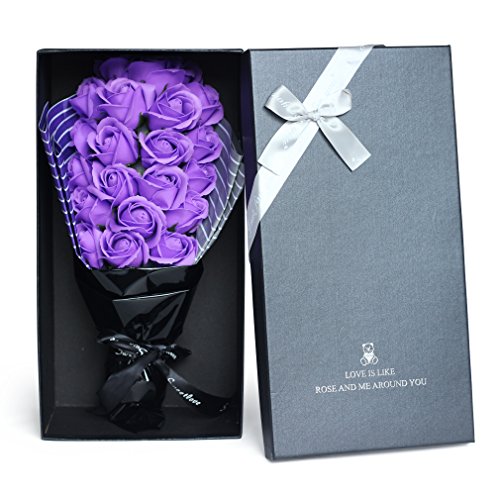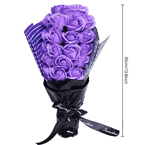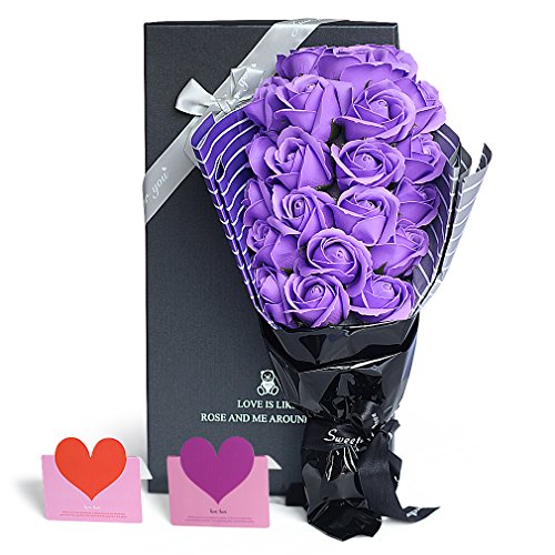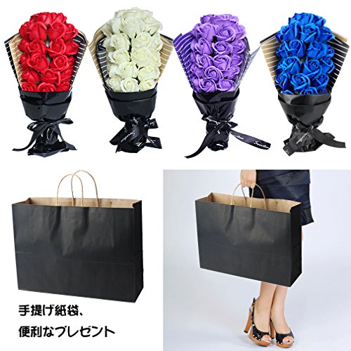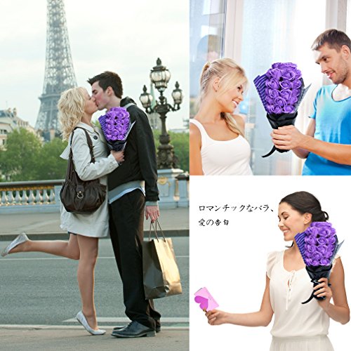 YOBANSA フレグランス シャボン フラワー 造花 ソープ 薔薇 枯れない 花 ブーケ プレゼント 花束 母の日 父の日 出産祝い 結婚祝い お見舞い 誕生日 石鹸 香り ギフト お祝い ラッピング 包装 ギフトバック付き 21 本 (パープル)