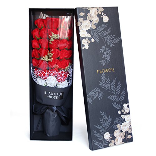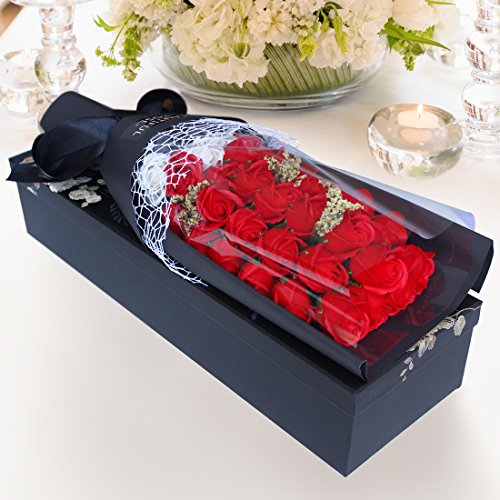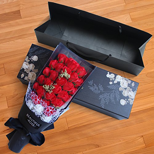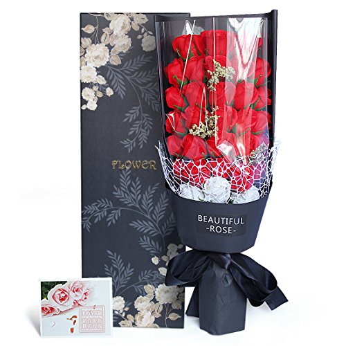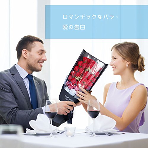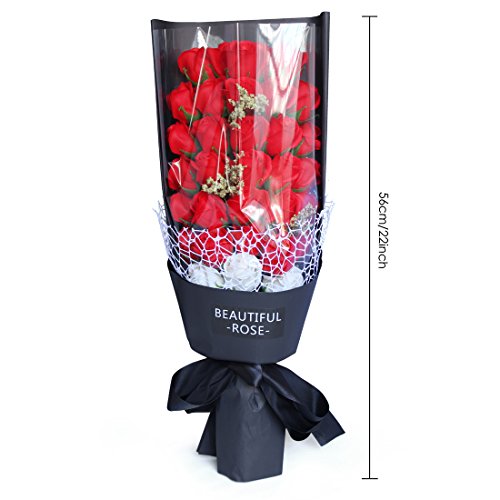 YOBANSA 造花 フレグランス ソープ フラワー プレゼント手作り花束 石鹸花 枯れない 花 母の日 誕生日 結婚祝い 結婚記念日 大切な人への感謝 メッセージカード付き (33本,レッド)
