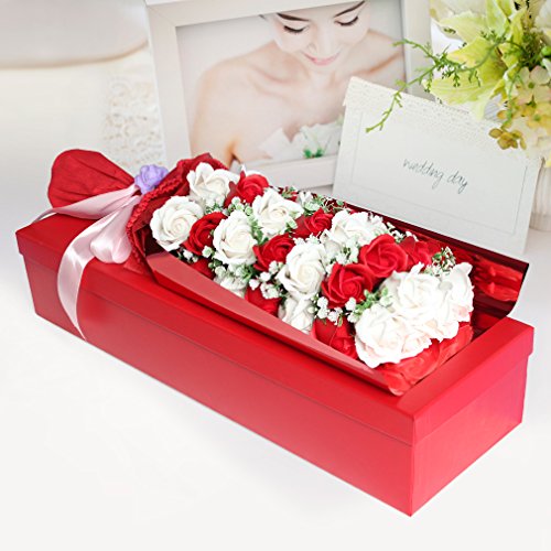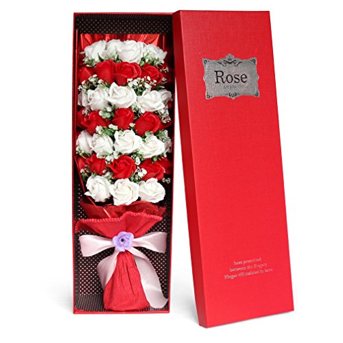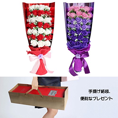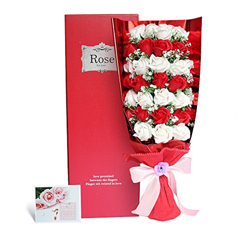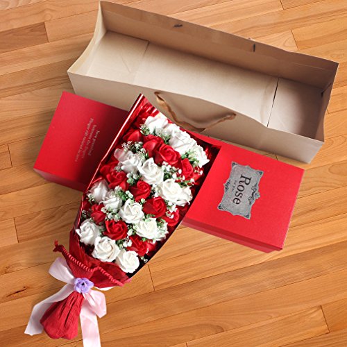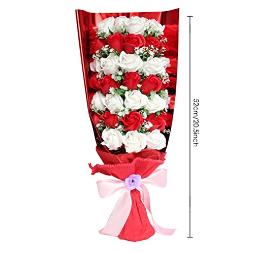 Yobansa 造花 石鹸の花 花束 ソープ フラワー 大切な人 へ 感謝 の 気持ち を 伝える 花束 ( 母の日 ・ バレンタイン ・ ホワイトデー ・ 入学 ・ 卒業 ・ 誕生日 ・ 結婚記念日 など 様々な お祝い の シーン に 最適 , 33 本 (赤と白)