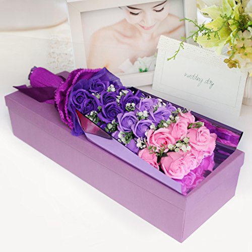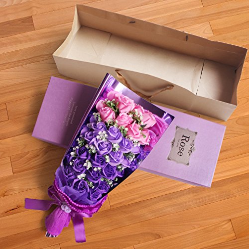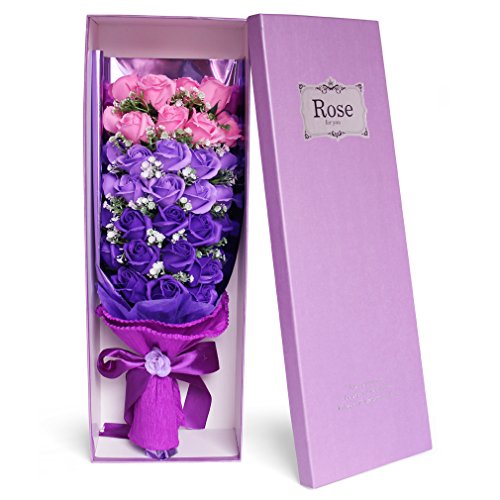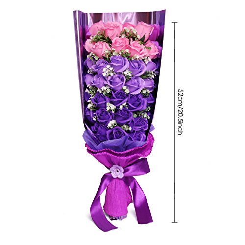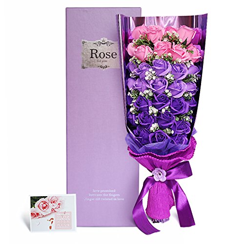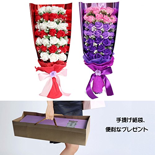 Yobansa 造花 石鹸の花 花束 ソープ フラワー 大切な人 へ 感謝 の 気持ち を 伝える 花束 ( 母の日 ・ バレンタイン ・ ホワイトデー ・ 入学 ・ 卒業 ・ 誕生日 ・ 結婚記念日 など 様々な お祝い の シーン に 最適 , 33 本 (ピンクとパープル)