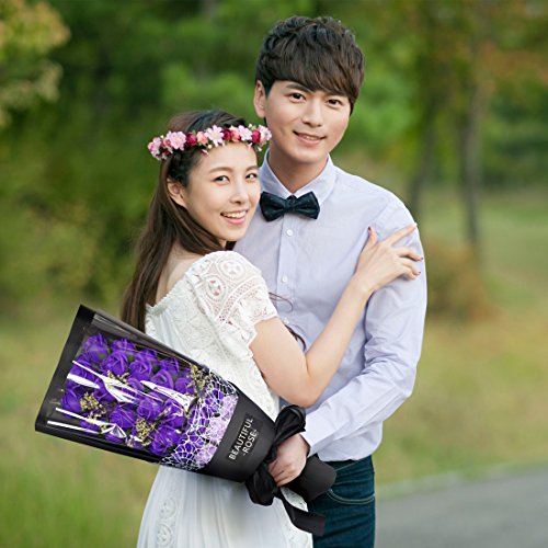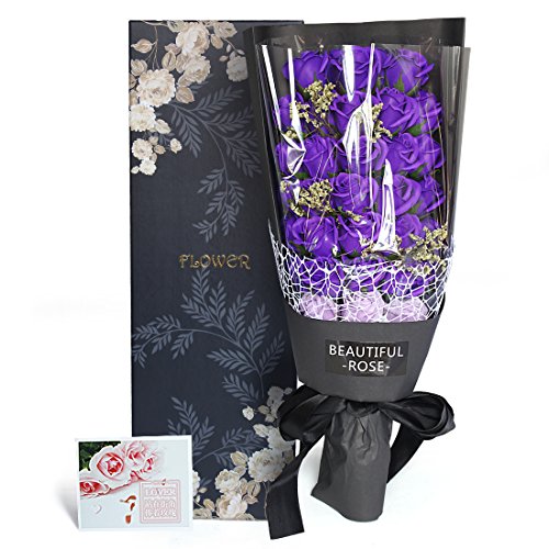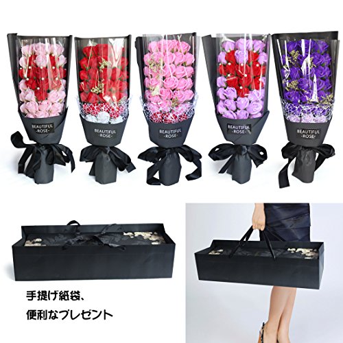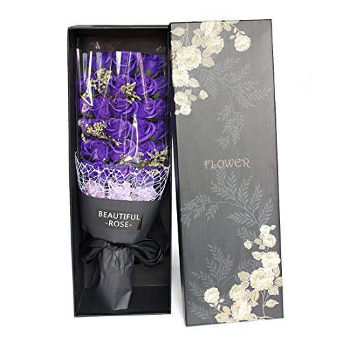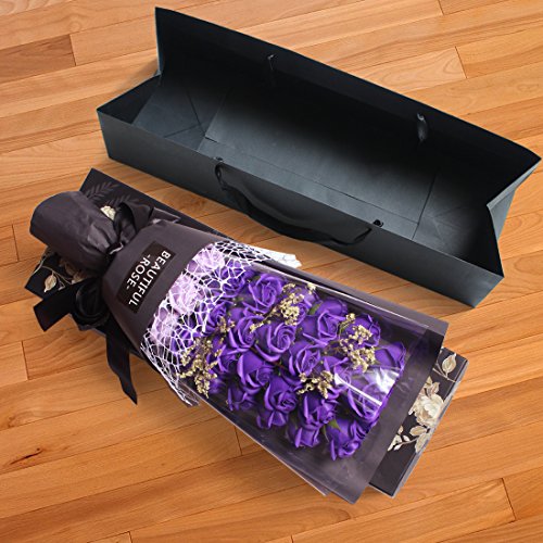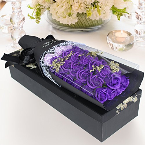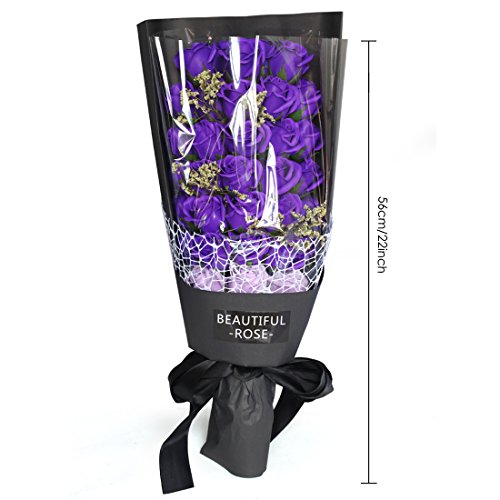 YOBANSA 造花 フレグランス ソープ フラワー プレゼント手作り花束 石鹸花 枯れない 花 母の日 誕生日 結婚祝い 結婚記念日 大切な人への感謝 メッセージカード付き (33本,ディープパープル)