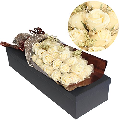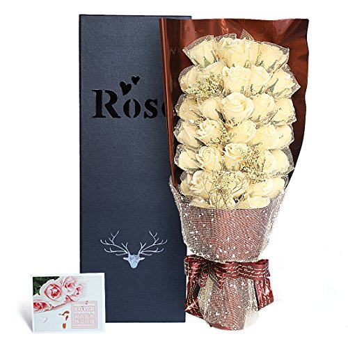 YOBANSA 造花 フレグランス ソープ フラワー プレゼント手作り花束 石鹸花 枯れない 花 母の日 誕生日 結婚祝い 結婚記念日 大切な人への感謝 メッセージカード付き (33本,シフォンベージュ)