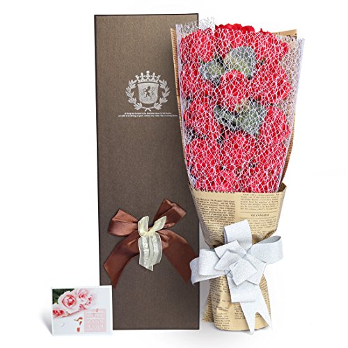 YOBANSA フレグランス シャボン フラワー 薔薇 枯れない 花 プレゼント 花束 石鹸 フラワー 結婚祝い 誕生日 母の日 父の日 定年祝い 還暦祝い 新築祝い 送別会 メッセージカード付き,13本 (レッド)
