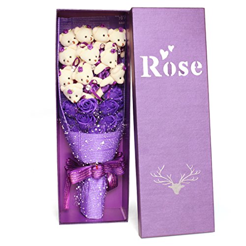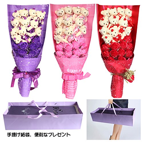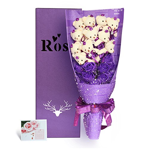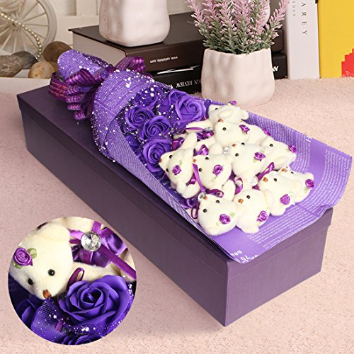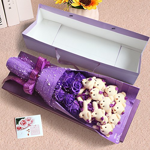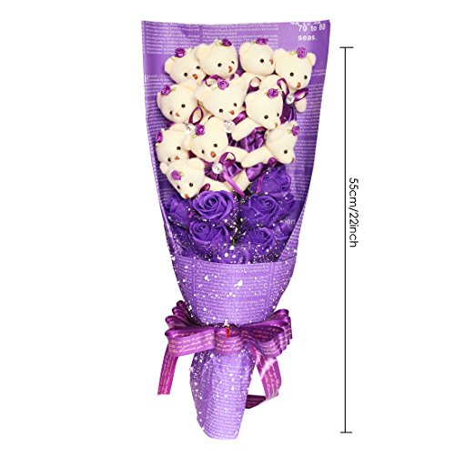YOBANSA 造花 花束 くま束 ベア ブーケ 可愛いぬいぐるみ (ベア11匹,花11匹) 成人礼 結婚式 結婚記念日 出産祝い プロポーズ 誕生日プレゼント お祝いギフト (紫の)