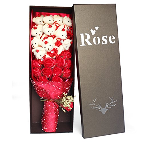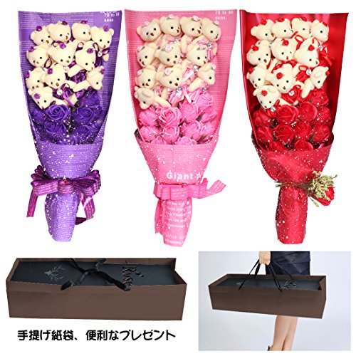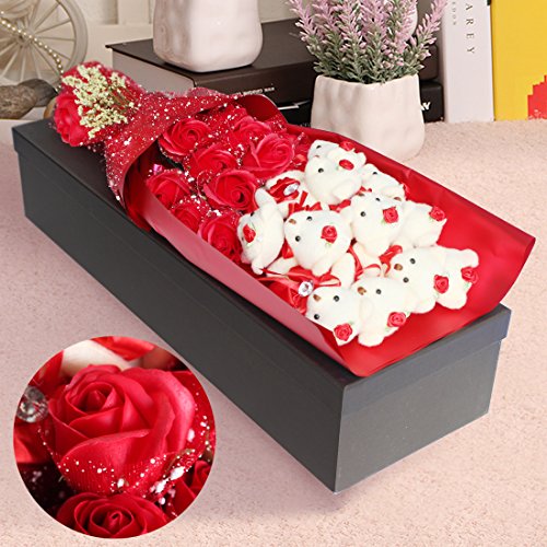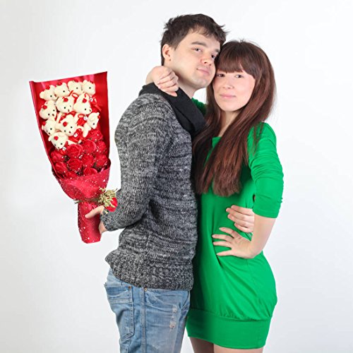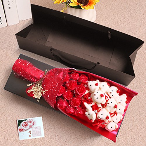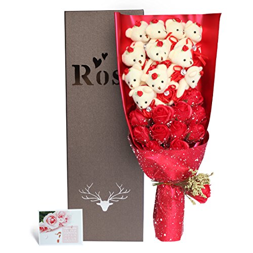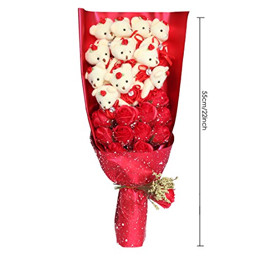 YOBANSA 造花 花束 くま束 ベア ブーケ 可愛いぬいぐるみ (ベア11匹,花11匹) 成人礼 結婚式 結婚記念日 出産祝い プロポーズ 誕生日プレゼント お祝いギフト (赤)