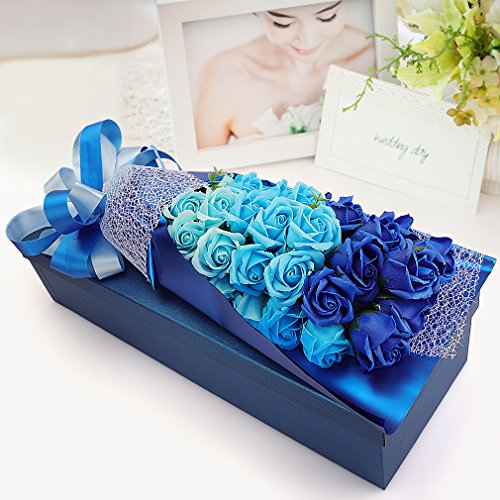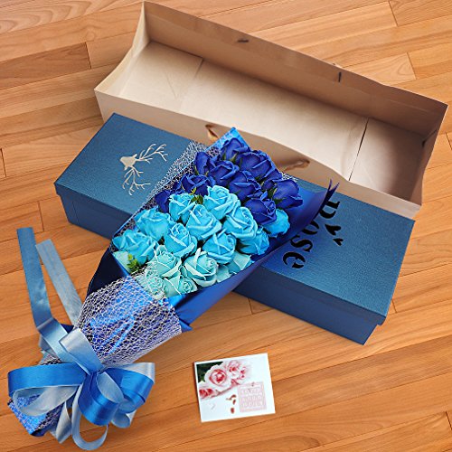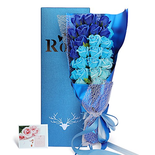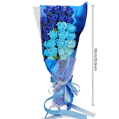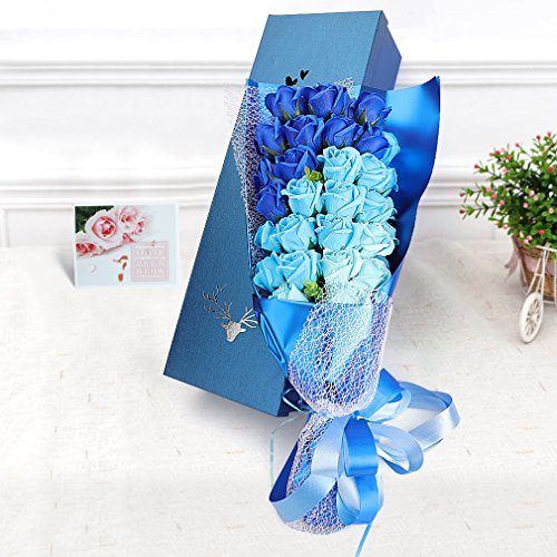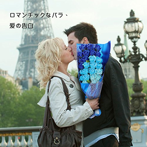 Yobansa 造花 石鹸の花 花束 ソープ フラワー 大切な人 へ 感謝 の 気持ち を 伝える 花束 ( 母の日 ・ バレンタイン ・ ホワイトデー ・ 入学 ・ 卒業 ・ 誕生日 ・ 結婚記念日 など 様々な お祝い の シーン に 最適 , 33 本 (3色の青)