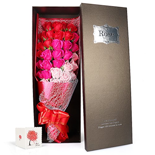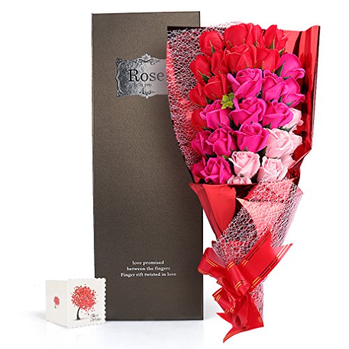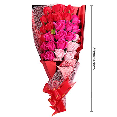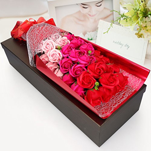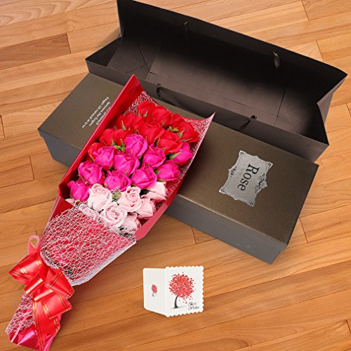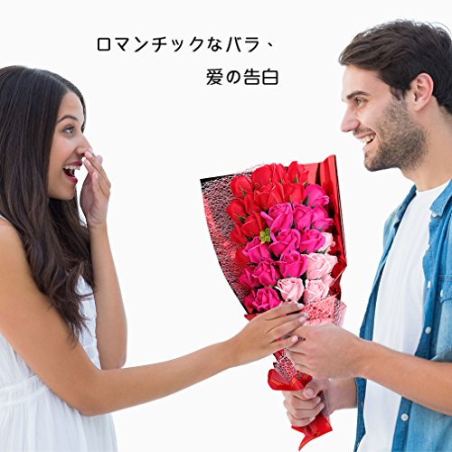 Yobansa 造花 石鹸の花 花束 ソープ フラワー 大切な人 へ 感謝 の 気持ち を 伝える 花束 ( 母の日 ・ バレンタイン ・ ホワイトデー ・ 入学 ・ 卒業 ・ 誕生日 ・ 結婚記念日 など 様々な お祝い の シーン に 最適, 33 本 (3色の赤)