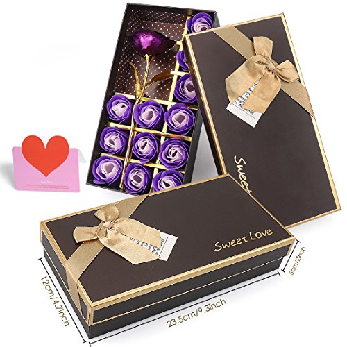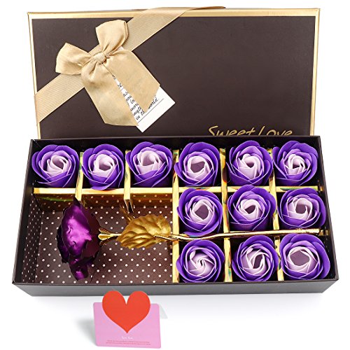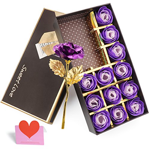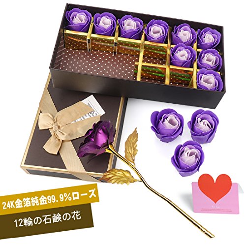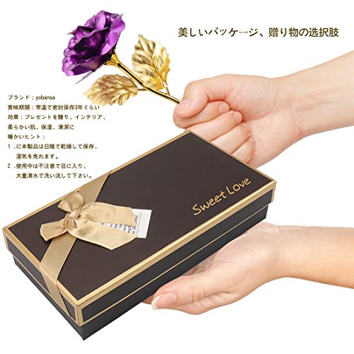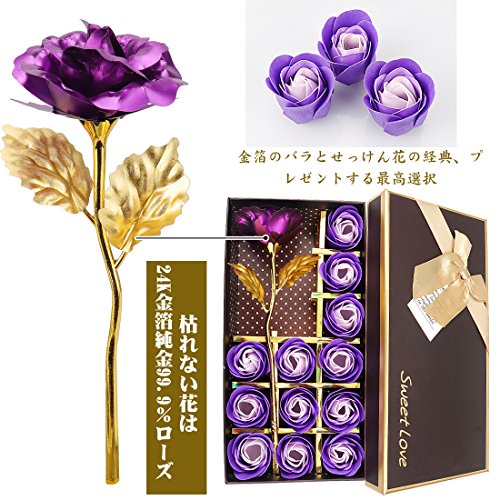 YOBANSA 金箔のバラ 造花 石鹸 花 フレグランス ソープ フラワー プレゼント 枯れない 花 母の日 誕生日 結婚祝い 結婚記念日 大切な人への感謝 メッセージカード付き (2色紫)