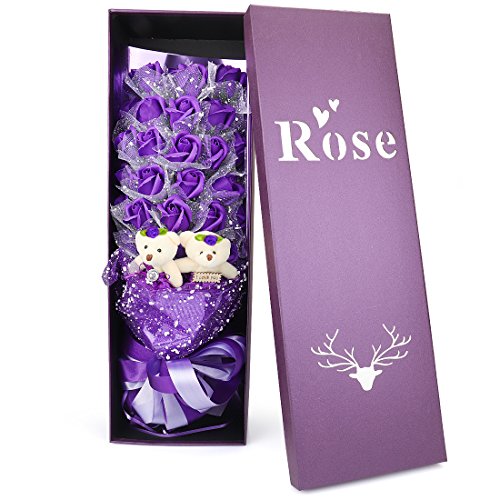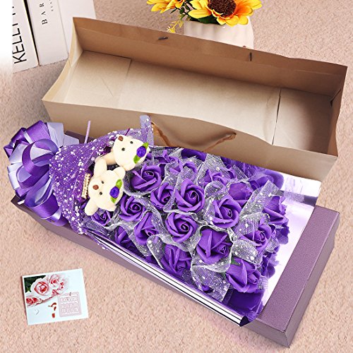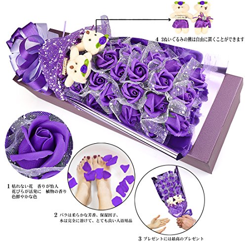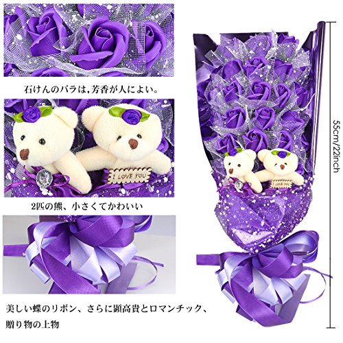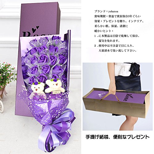 YOBANSA 造花 フレグランス ソープ フラワー プレゼント 花束 石鹸 薔薇 枯れない 花 バラ ブーケ プレゼント 結婚祝い 誕生日 母の日 父の日 定年祝い 還暦祝い 新築祝い 送別会 メッセージカード付,33本 (新しい紫色)