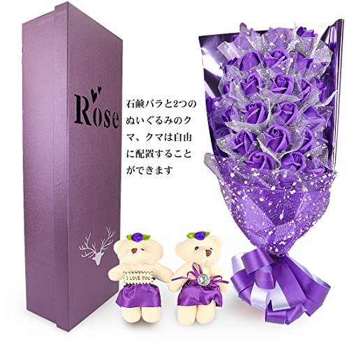 - ✿【枯れない花♥永遠の愛】石鹸素材によって作られ、鮮やかさがよく保持できます。また、サイズや形、花びらの数や重ね、咲いた姿も生花とそっくりでいきいきとしています。華やかで枯れなくて大切な思い出を美しいまま長く楽しむことができます。くまのぬいぐるみが二匹があり、可愛さが倍増!