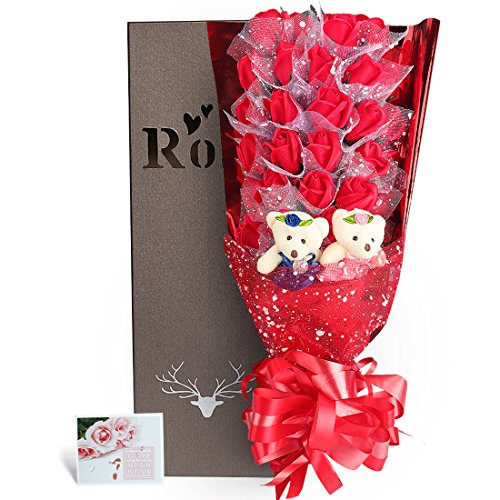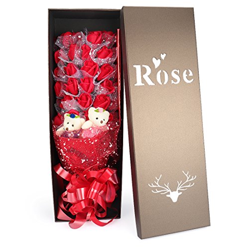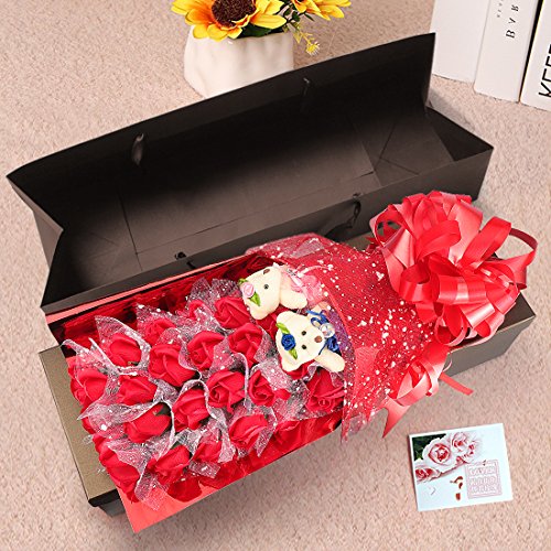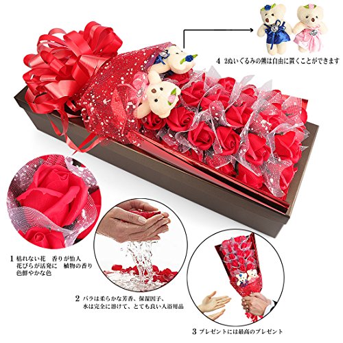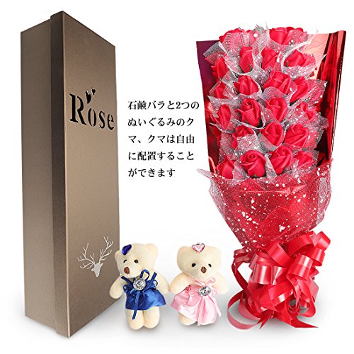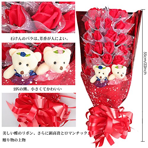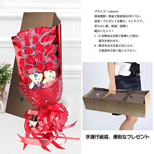YOBANSA 造花 フレグランス ソープ フラワー プレゼント 花束 石鹸 薔薇 枯れない 花 バラ ブーケ プレゼント 結婚祝い 誕生日 母の日 父の日 定年祝い 還暦祝い 新築祝い 送別会 メッセージカード付,33本 (レッド)