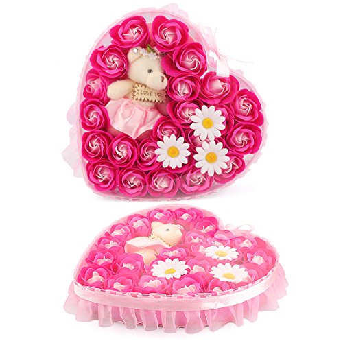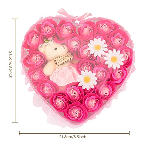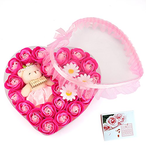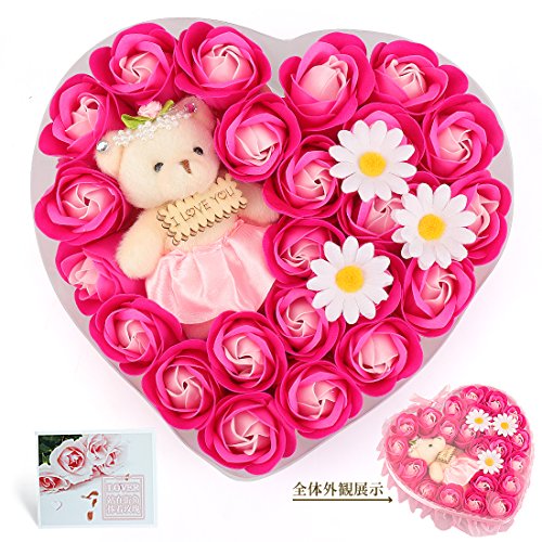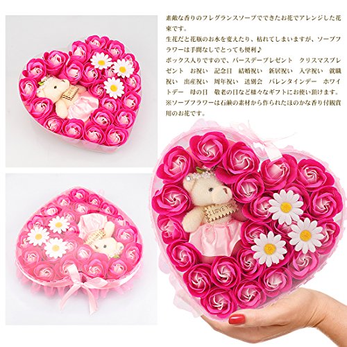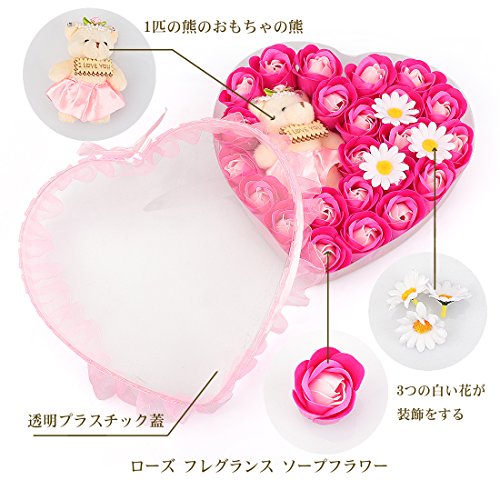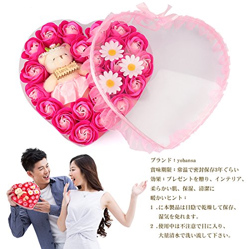 Yobansa 造花 ソープ フラワー プレゼント 枯れない お花 薔薇 かわいいクマ 石鹸 バラハート型ギフトボックス 誕生日 結婚 記念日 卒業 入学 出産 お祝い,18本 (ピンク 23本)