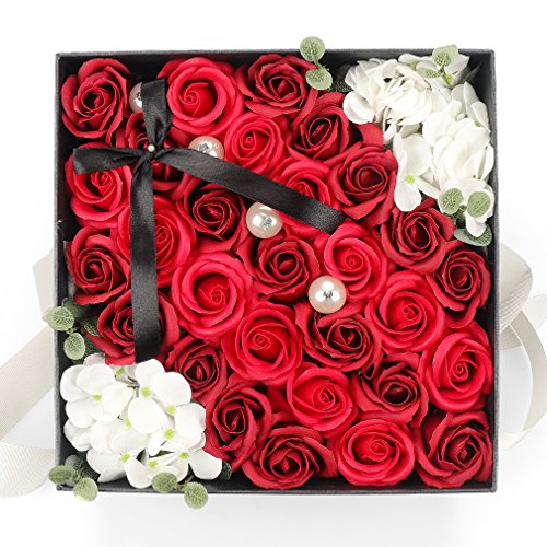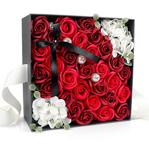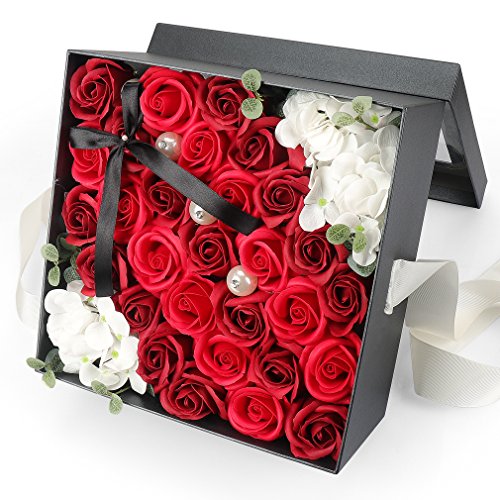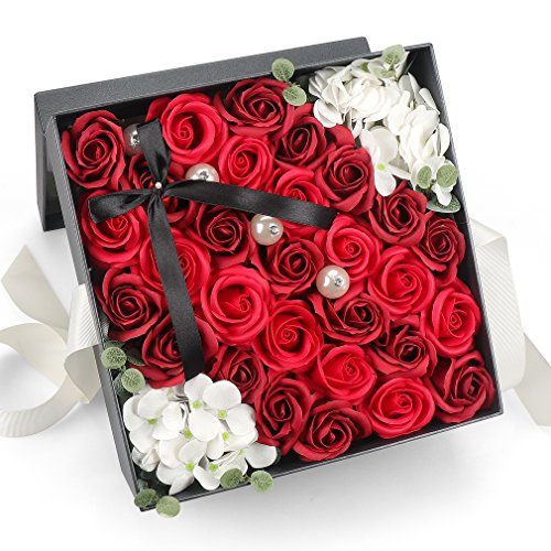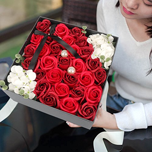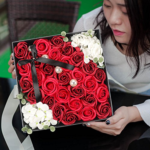 Yobansa ソープフラワー 創意方形ギフトボックス 造花 石鹸花 枯れない 誕生日 母の日 記念日 先生の日 バレンタインデー 昇進 転居など最適としてのプレゼント メッセージカード付き(赤)