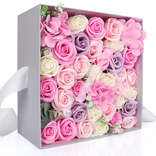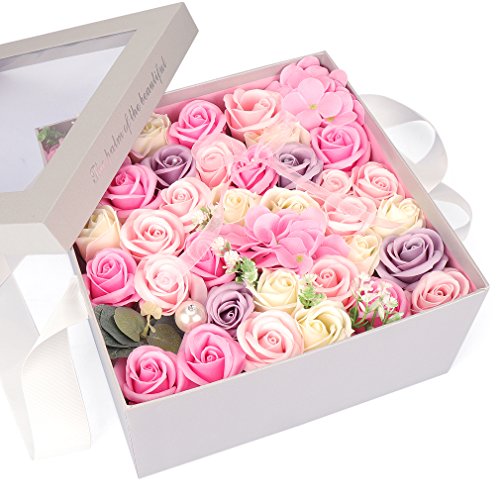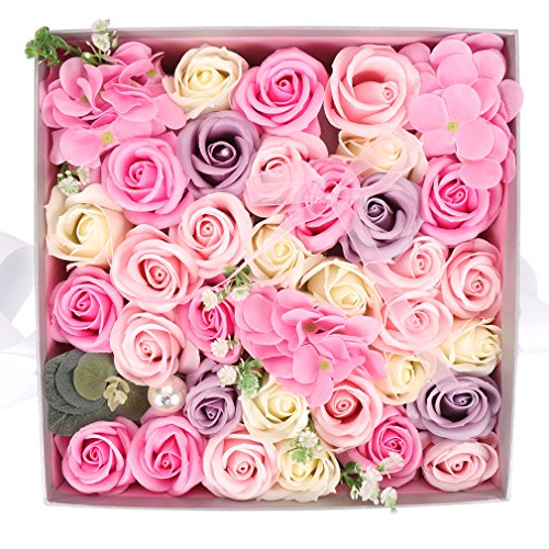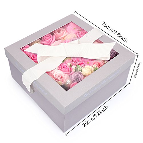 Yobansa ソープフラワー 創意方形ギフトボックス 造花 石鹸花 枯れない 誕生日 母の日 記念日 先生の日 バレンタインデー 昇進 転居など最適としてのプレゼント メッセージカード付き(ピンク)