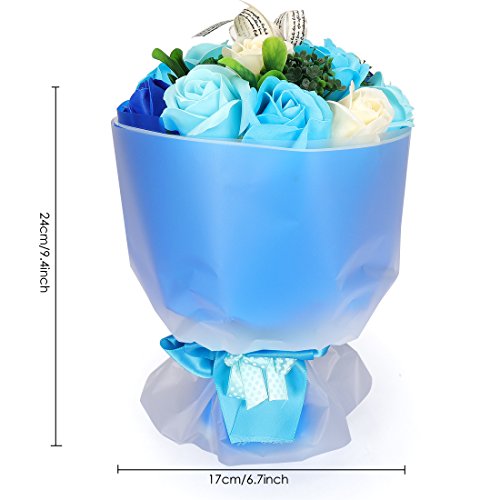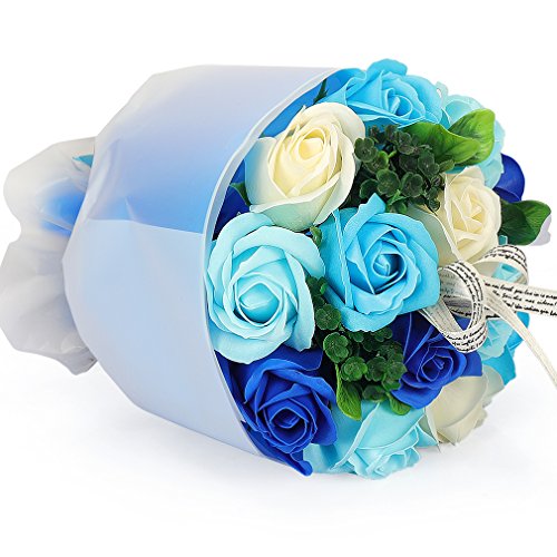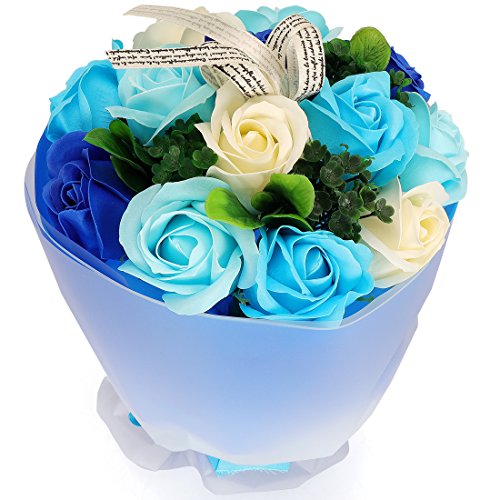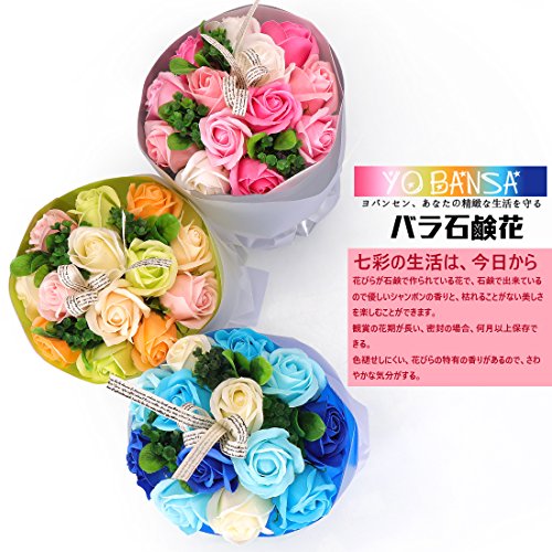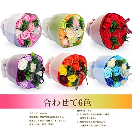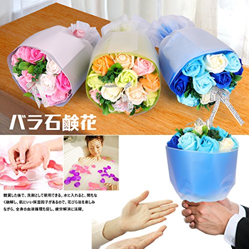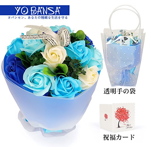 YOBANSA フレグランスソープフラワー ブーケ 枯れない花 バラ 花束 シャボンの香り誕生日 記念日 プレゼント ギフトボックスセット 6色 (青)