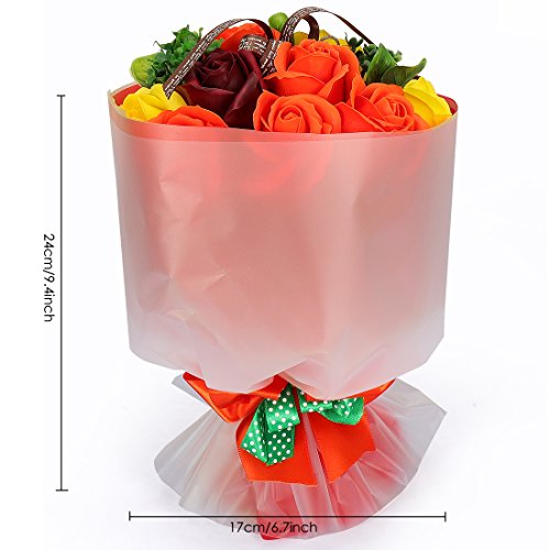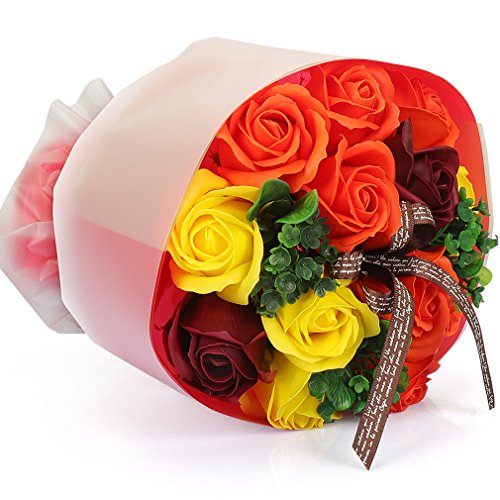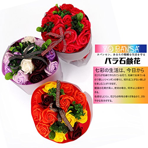 YOBANSA フレグランスソープフラワー ブーケ 枯れない花 バラ 花束 シャボンの香り誕生日 記念日 プレゼント ギフトボックスセット 6色 (オレンジ)