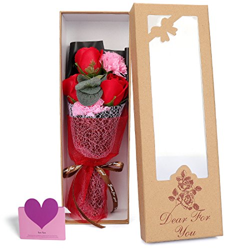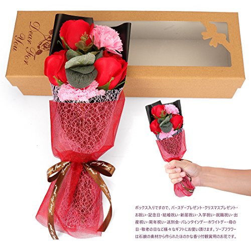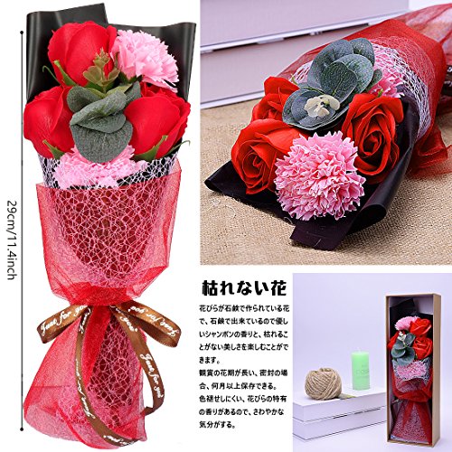- ✅内容物: 3つの石鹸の花、2つのカーネーションメッセージカード1枚、ギフトボックス、 ギフトボックス:33.8cmX11.5cmX7.8cm