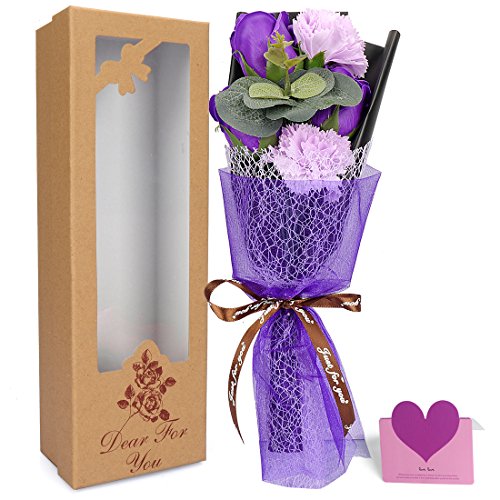 YOBANSA レグランス ソープフラワー 花束 ギフトボックス 誕生日 父の日 記念日 先生の日 バレンタインデー 昇進 転居など最適としてのプレゼント (紫の)