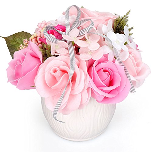 - ✅最新の白陶器デザイン、枯れない花、フレグランスシャボンフラワー(石鹸素材でつくられたお花)のフラワーブーケです。見た目にも美しく、石鹸の優しい香りも楽しめます。