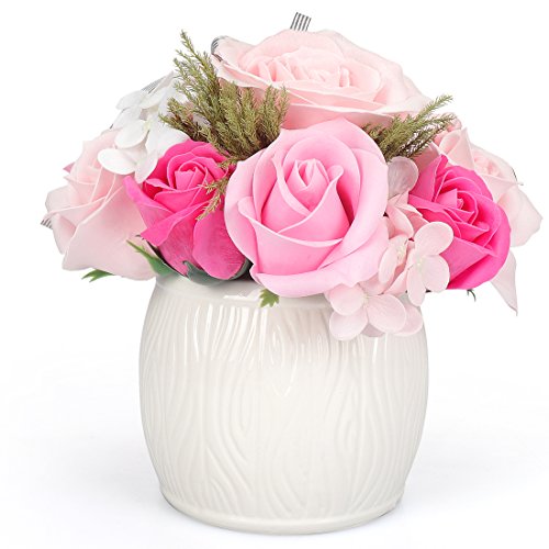 YOBANSA ソープフラワー 白陶器 枯れない 花 石鹸花束 創意プレゼント 父の日 母の日 バレンタインデー 誕生日 結婚記念日 クリスマス (ピンク)