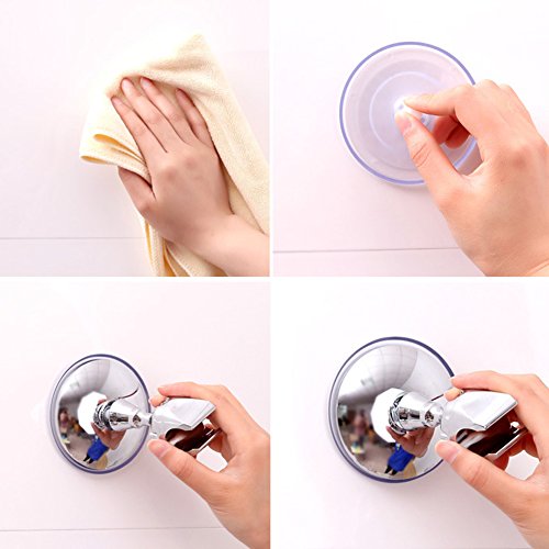 メタル シャワー フック 強力吸盤でがっちり固定 角度調整可能 クリーニングクロス付き (シルバー,シルバー)