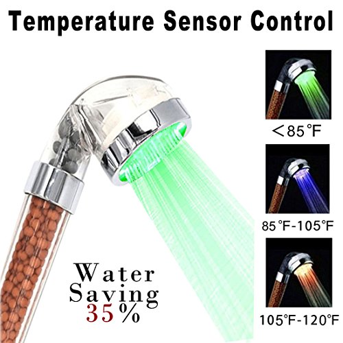 LEDハンドヘルドシャワー、YuUve高圧Spaシャワーヘッド負イオンフィルタスプレースプリンクラー7色変更LEDハンドヘルドヘッド