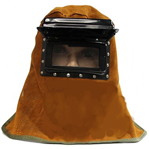 YY) 溶接 牛革 マスク かぶり面 やけど 防止 保護具 はね上げ式 透明 遮光窓 2種 ガラス