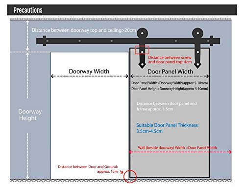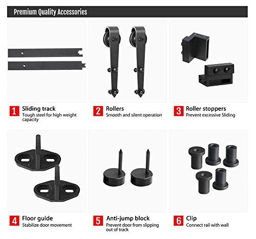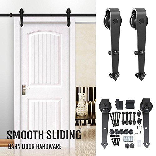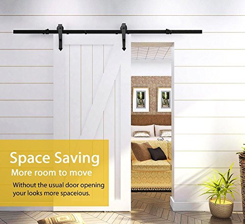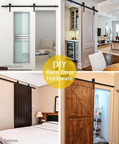 Yaheetechブラックモダンスライドバーン木製ドアハードウェアクローゼットセット 6ft ブラック YA-2932