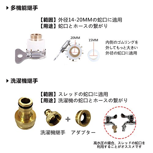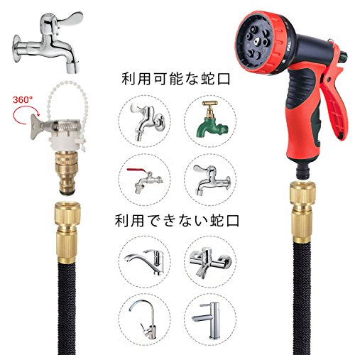 - ☞【2018伸びるホース】チューブ、ノズル、収納全部改良された新型のマジックホースが誕生しました!金属製の多機能継手を付属、14-20MMの蛇口に適用、水漏れ心配なし!