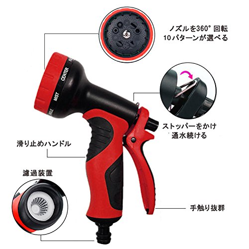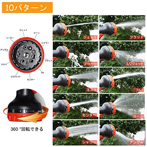 - ☞【ノズル進化】 ◎ 1/2VERT、ジェット、ミスト、フル、フラット、コーン、シャワー、アングル、ソーカー、センター全10パターンの散水ノズルが登場しました! ◎ ノズルを回転するだけで、洗車や掃除やガーデニングなどいろいろな場合に適用します