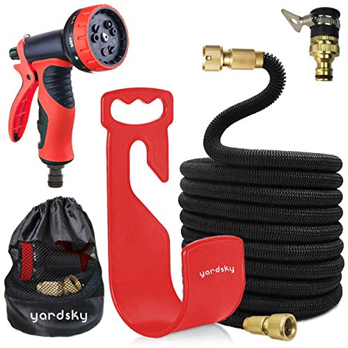 Yardsky 伸縮ホース 散水 伸びる ガーデニング マジックホース 10パターン ノズル 洗車 花園 掃除 金属製 レッド 7.5m 15m 22m 30m
