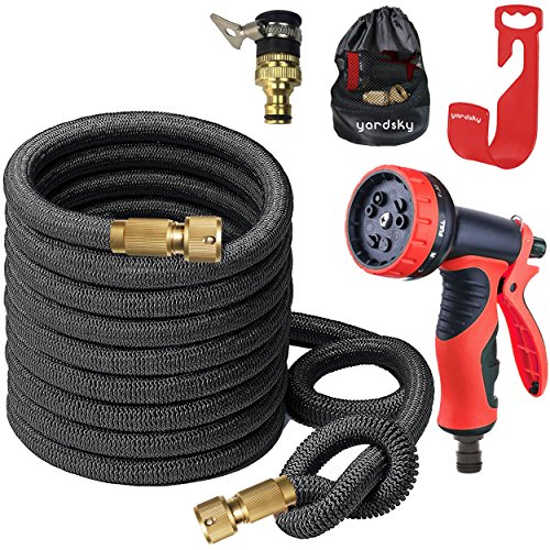 Yardsky 伸縮ホース 散水 伸びる ガーデニング マジックホース 10パターン ノズル 洗車 花園 掃除 金属製 レッド 7.5m 15m 22m 30m
