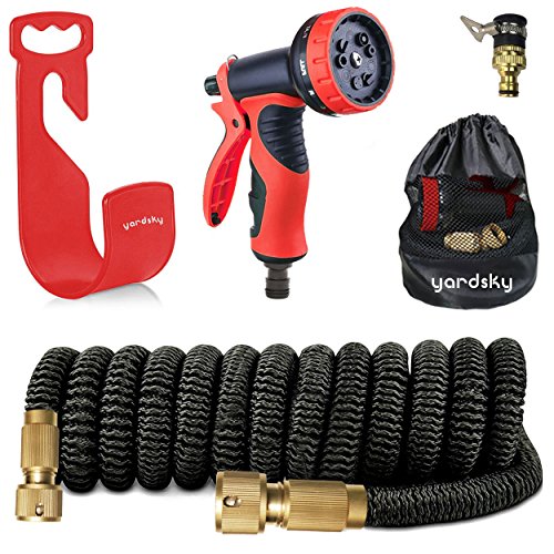 Yardsky 伸縮ホース 散水 伸びる ガーデニング マジックホース 10パターン ノズル 洗車 花園 掃除 金属製 レッド 7.5m 15m 22m 30m